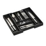 Unübersichtliche Küchenschubladen gehören mit diesem Besteckkasten der Vergangenheit an. Der Schubladeneinsatz mit 5 Haupt- und 2 Ausziehfächern bietet viel Platz für Essbesteck, größere Küchenmesser sowie verschiedenes Kochbesteck. Dank der individuell einstellbaren Breite passt sich der Besteckkasteneinsatz an unterschiedliche Schubladengrößen an. Die Besteckeinlage aus robustem Bambus und MDF überzeugt dabei mit ihrem schlicht-eleganten Design in Schwarz.