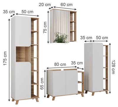 Badregal: 50 x 128 x 35 cm (BxHxT)