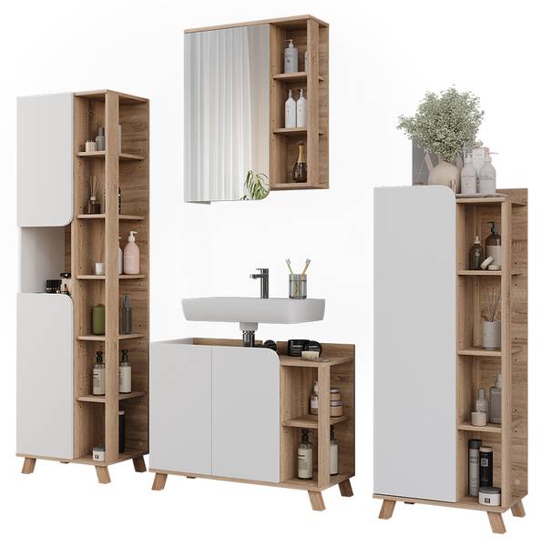 Entdecken Sie unser hochwertiges Badmöbel-Set Karen und verwandeln Sie Ihr Badezimmer in eine wahre Wohlfühloase! Mit dem Set, bestehend aus Waschbeckenunterschrank und Spiegelschrank, bringen Sie nicht nur Stil, sondern auch Funktionalität in Ihren Raum. Das moderne Design und die durchdachte Ausstattung machen Karen zu einer echten Bereicherung für Ihr Zuhause. Lassen Sie sich von der Eleganz und Praktikabilität dieses Sets überzeugen und gönnen Sie sich das Badezimmer, das Sie schon immer wollten. Gönnen Sie sich Karen - für ein Badezimmer, in dem Sie sich rundum wohlfühlen!