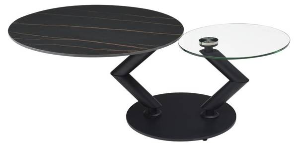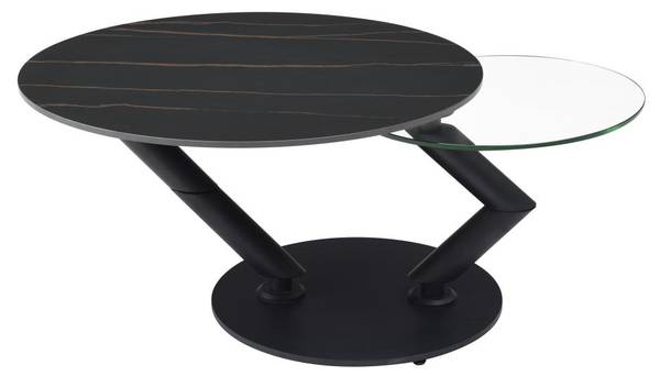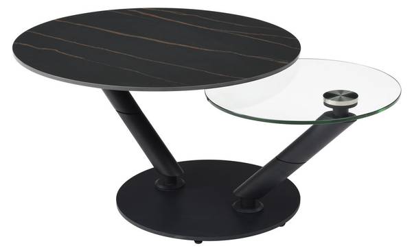 Mit der Kombination aus einer Keramikplatte in Marmor-Optik und einer zweiten Platte aus Sicherheitsglas schafft der Couchtisch ELDOVA ein perfektes Gleichgewicht zwischen eleganten Materialien und modernem Design. Dank der Tischplatten und der drehbaren Beine können Sie die Anordnung nach Belieben anpassen und so die perfekte Einrichtung für jeden Moment schaffen.