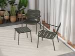 Die Metallstruktur sorgt für Stabilität und Widerstandskraft im Alltag. Dank Anti-UV-Behandlung und matter Oberfläche, die Sonnenreflexionen reduziert, behält die Sitzgruppe MIRMANDE auch bei starker Sonneneinstrahlung ihren schönen Look. Der Rostschutz gewährleistet zudem hervorragende Wetterbeständigkeit. Praktisch: Die stapelbaren Sessel lassen sich im Handumdrehen verstauen und schaffen schnell Platz.
