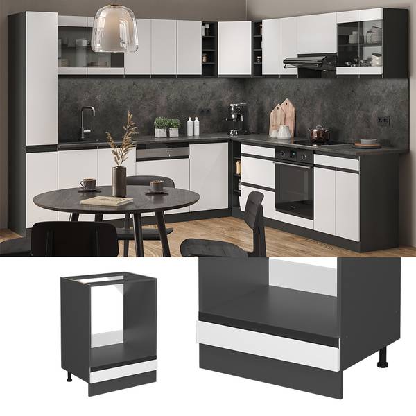 LIEFERUMFANG: Herdumbauschrank mit Arbeitsplatte, Montagematerial, Montageanleitung (Sofern nicht anders angegeben, gehören Elektrogeräte und Dekorationen nicht zum Lieferumfang)