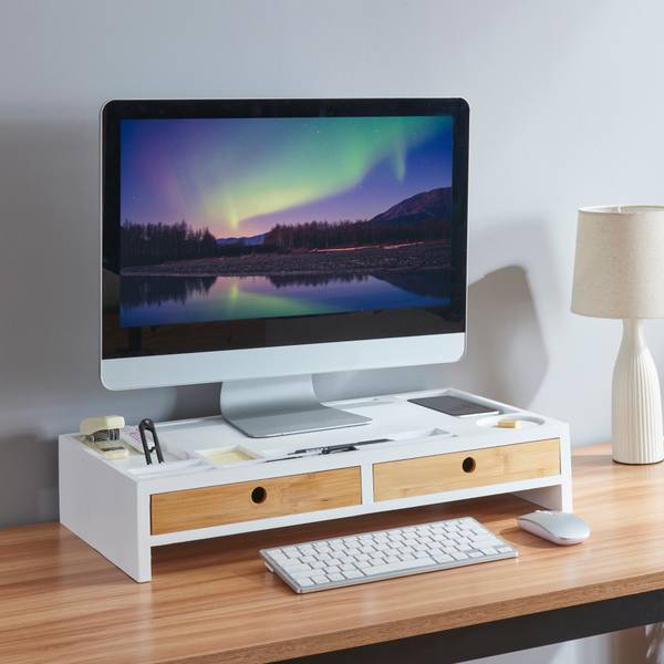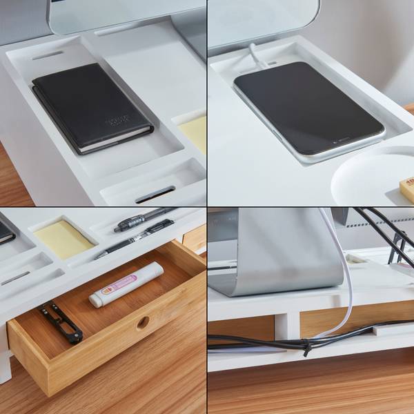 Der Monitorständer und Schreibtischorganizer eignet sich ideal für Ihr Zuhause oder Ihr Büro, um Ihre Bildschirme auf eine ergonomische Höhe anzuheben.