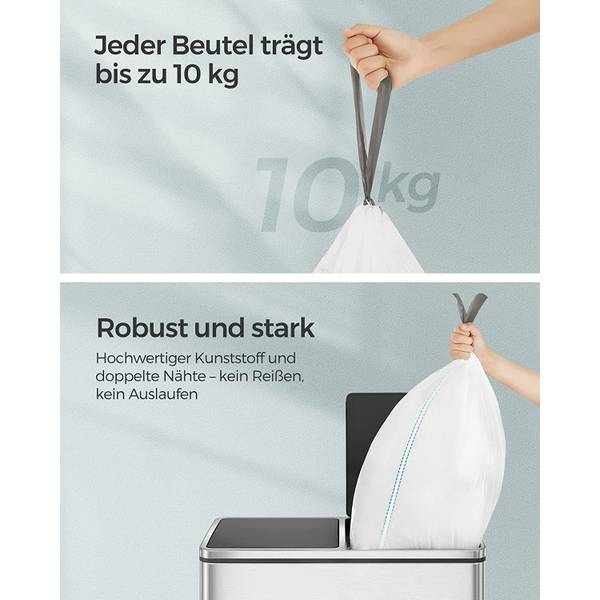 [Passgenaue Müllbeutel] Diese Müllbeutel mit Zugband sind so konzipiert, dass sie genau in die Hansiro 30-Liter-Einzelmülleimer oder 60-Liter-Doppelmülleimer passen – praktische Helfer, um den Müll zu entsorgen und Ihre Küche sauber zu halten