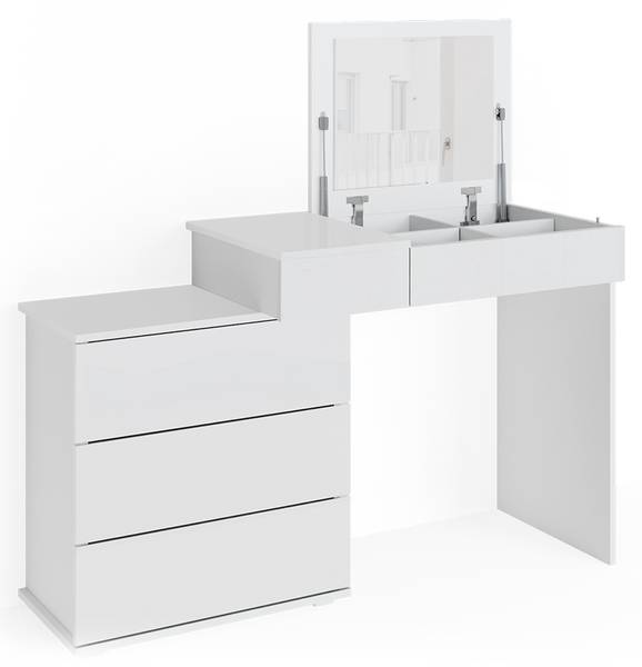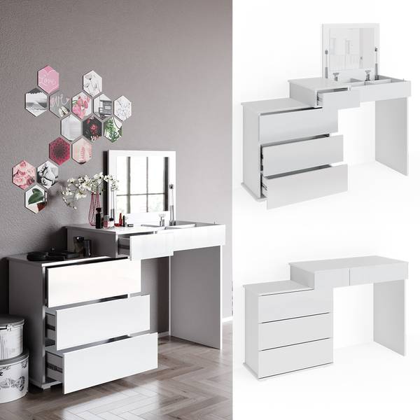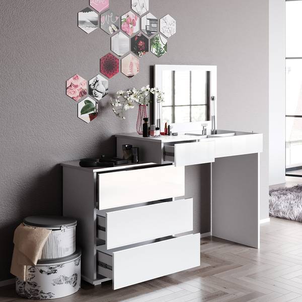 Der Schminktisch Lotos ist der perfekte Begleiter für alle, die ihr Make-up und Styling lieben. Mit seinem funktionellen Design bietet er viel Stauraum und hilft, das Chaos im Badezimmer zu beseitigen. Ob als Frisierkommode oder Schminkkommode, dieser Tisch ist ein echtes Multitalent. Die robuste Konstruktion und die geschlossenen Fächer machen ihn zu einem hochwertigen Möbelstück, das auch nach Jahren noch Freude bereitet. Der Klappspiegel ist ein echtes Highlight und ermöglicht eine perfekte Sicht auf das eigene Styling. Der Schminktisch Lotos ist in verschiedenen Ausführungen erhältlich und kann so perfekt auf die individuellen Bedürfnisse angepasst werden. Mit diesem Schminktisch wird das tägliche Styling zum Highlight des Tages.