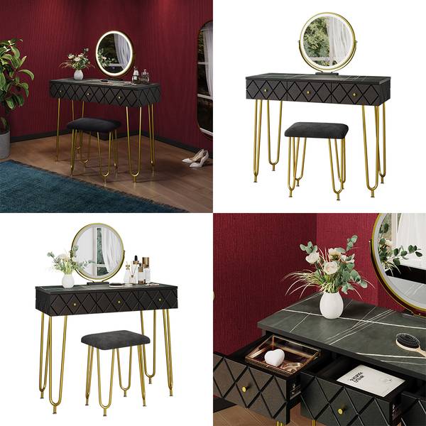 Schminktisch: Marmor-Schwarz