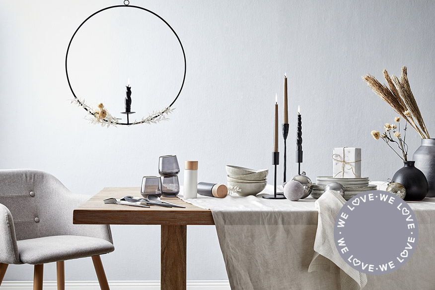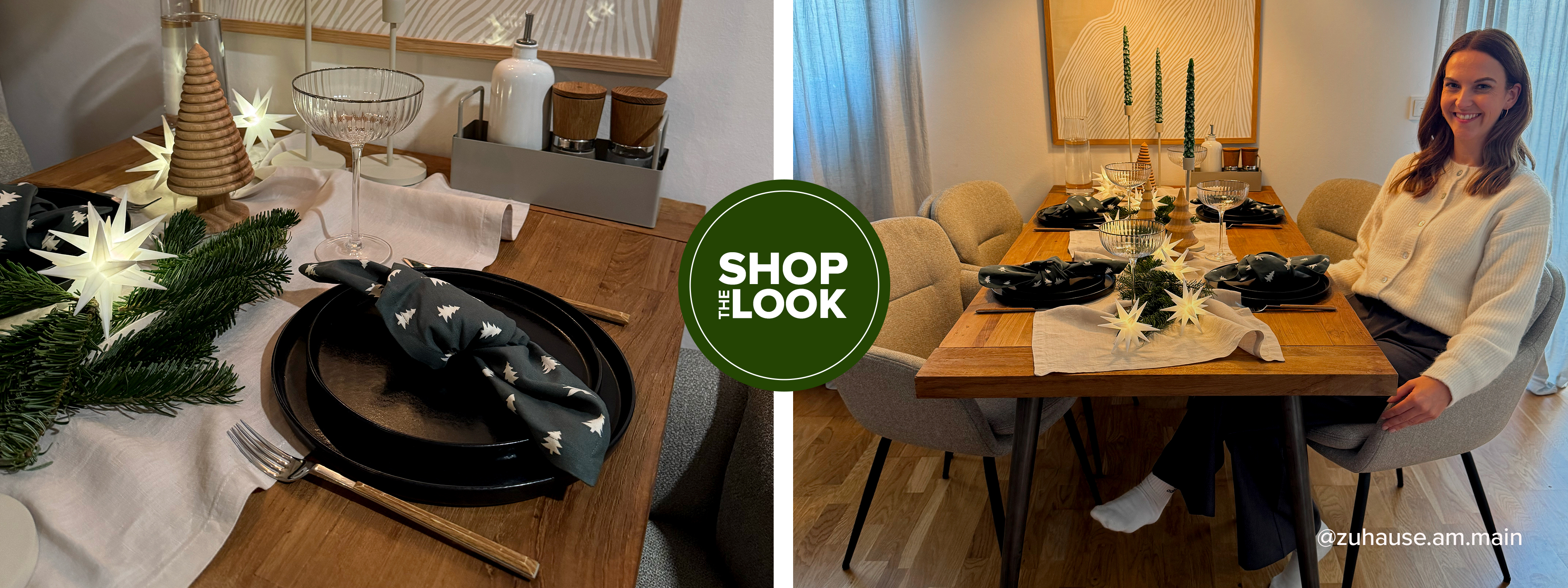 Caro von @zuhause.am.main zeigt, wie festlich Schlichtheit sein kann. Beim weihnachtlichen Table Setting dreht sich alles um filigrane Baummotive und natürliche Deko vom Leinenläufer bis zu den Tannenzweigen. Dabei setzt sie farblich auf maximal drei dezente Töne: Schwarz, Beige und gedecktes Nadelgrün. So liegt der Fokus am Tisch voll und ganz auf einer besinnlichen Atmosphäre zum Beisammensein und Genießen.