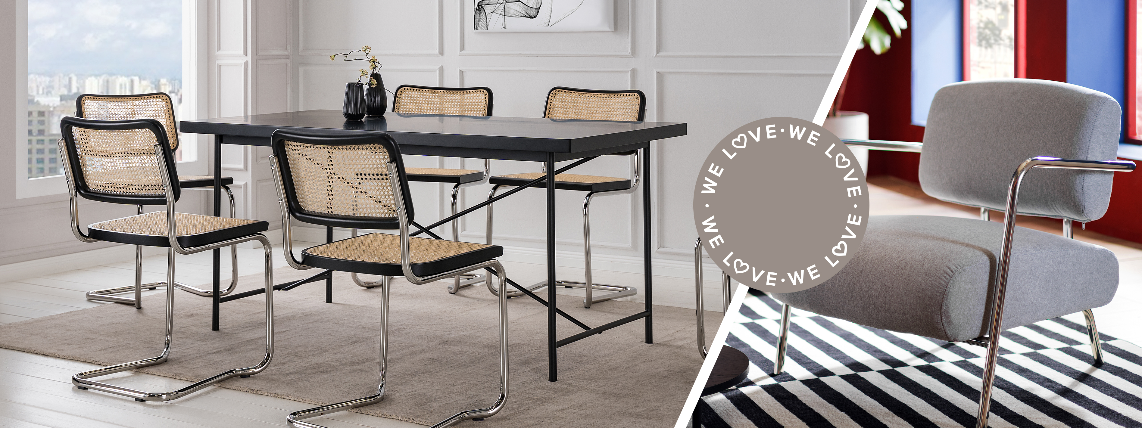 Passend zur festlichen Jahreszeit sorgen wir diesen Winter mit Pieces in Silber, Chrom und Metallic-Tönen für echte Glanzmomente zu Hause. Nachdem renommierte Bauhaus-Designer schon vor über 100 Jahren die ikonischen Silver Styles zelebrierten, entzücken diese heute wieder mit ihrem grossen CHROMEback. Chromleuchten, Tischbeine aus Stahl, silberne Accessoires und Co. frischen zeitlose Settings mit einem modernen, minimalistischen Vibe auf. Tipp, damit's nicht zu kühl wirkt: Warme Naturtöne verleihen den Metalls eine überraschende Anmut.