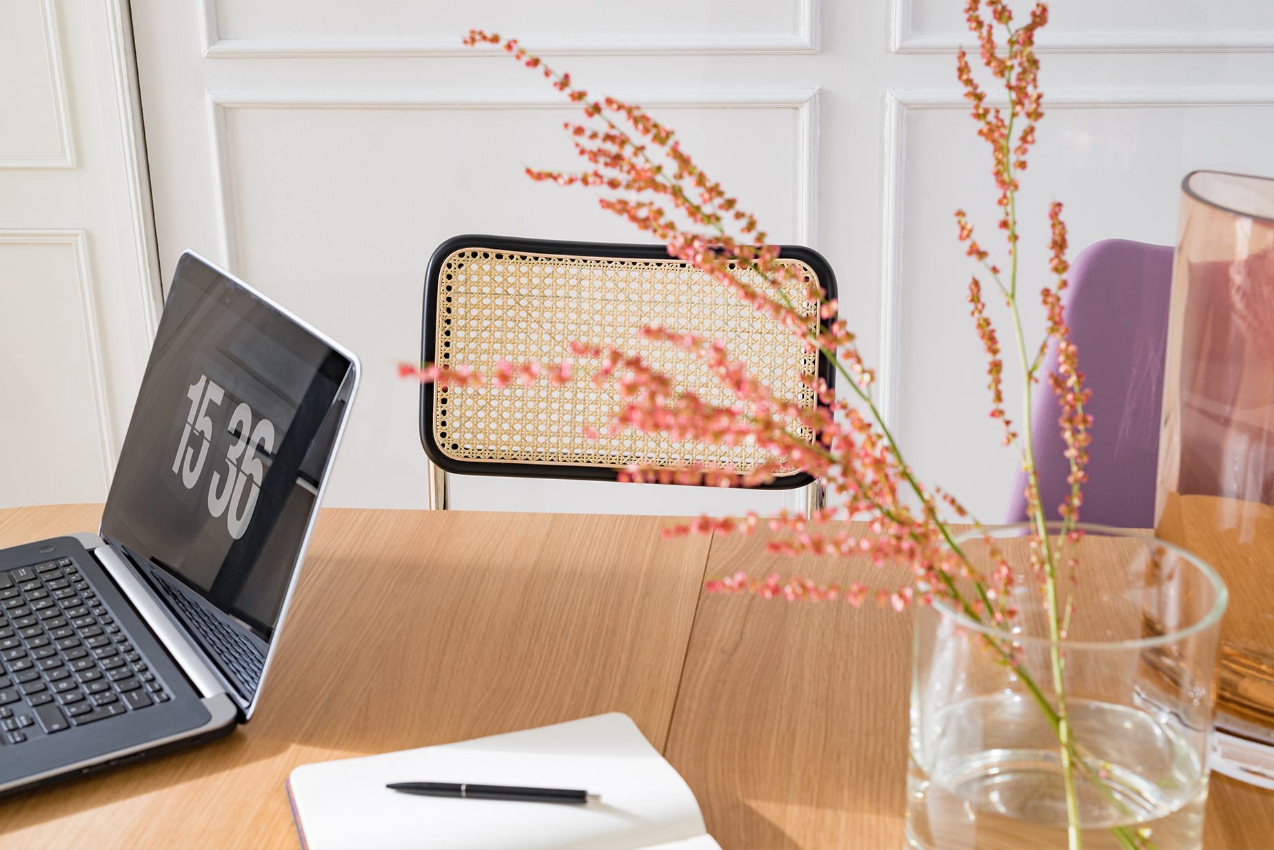 Wer sagt eigentlich, dass man fürs Homeoffice ein Büro braucht? Kreiere dir deine stylishe Work Zone kurzerhand am Esstisch und lass deinen Gedanken in inspirativer Umgebung freien Lauf. Zusammen mit sanften Farbakzenten lassen Retro-Elemente wie ein gemusteter Teppich im Bauhaus-Design deine kreativen Ideen sprudeln, wetten?