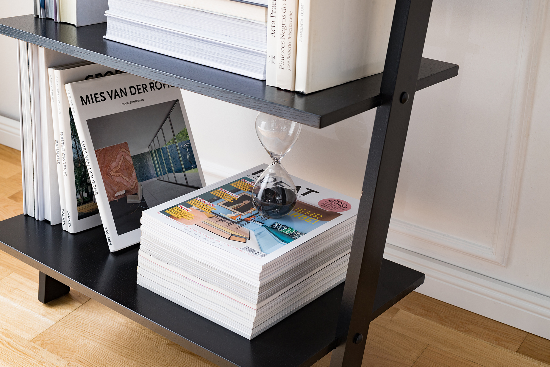 Ein Leiterregal hält Platz für deine Bücher, Deko oder Pflanzen bereit und bringt durch seinen offenen Look immer eine gewisse Leichtigkeit mit sich. Dieses It-Piece in Schwarz fügt sich stilecht in das schwarz-weisse Dining-Setting mit 80s-Charme ein.