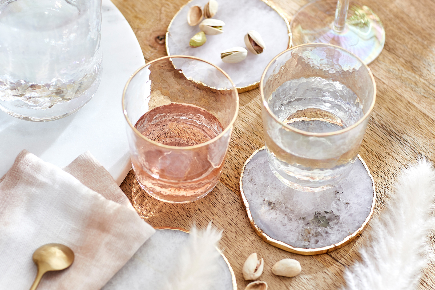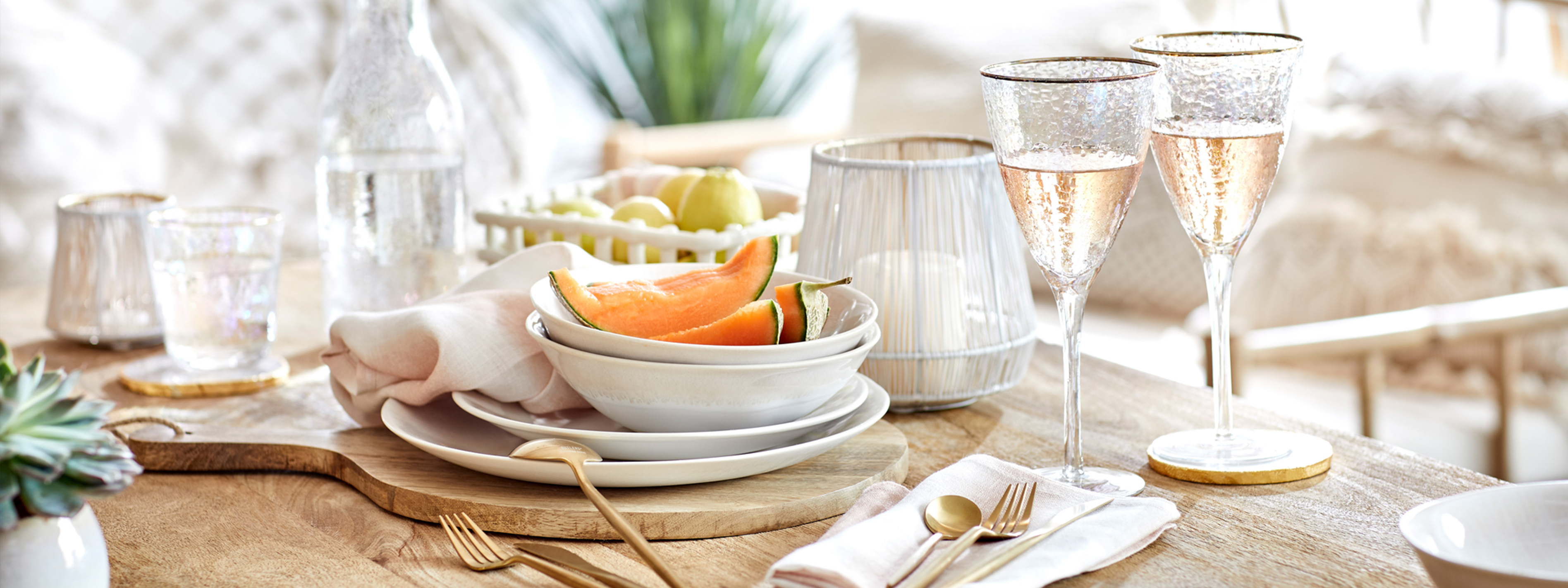 Bei diesem Dining-Trend hat man sofort den Beat der Wellen im Ohr und kilometerlange weiße Sandstrände mit kristallklarem Wasser vor Augen. Eine Sonnentafel gedeckt in sommerlich-edlen Rosé- und Goldtönen, abgerundet durch Perlmuttglanz und viel Weiß, verführt uns mit ihren locker-leichten und gleichzeitig extravaganten Ibiza-Vibes. Textilien sowie Pieces aus Holz und Rattan, zum Beispiel von BUTLERS, erden den Look. Im Zusammenspiel mit viel Grün und den schimmernden Komponenten verbreiten sie außerdem Gelassenheit und Harmonie und erinnern uns an das muntere Zusammenkommen auf ibizenkischen Hippiemärkten.