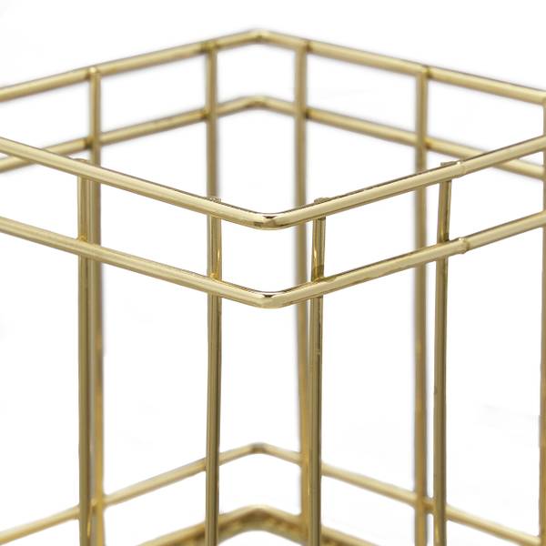 Que ce soit les stylos sur votre bureau ou les pinceaux de maquillage sur votre coiffeuse : Gardez vos ustensiles toujours bien rangés dans cet élégant pot à crayons. Le rangement pour pinceaux est non seulement un accessoire pratique, mais aussi un élément décoratif qui attire l'attention dans le bureau, le bureau, la salle de bain ou la chambre à coucher. Le design grillage ouvert en doré élégant donne au porte-stylos un aspect moderne. Fabriqué en métal robuste, il est aussi extrêmement durable et résistant.
