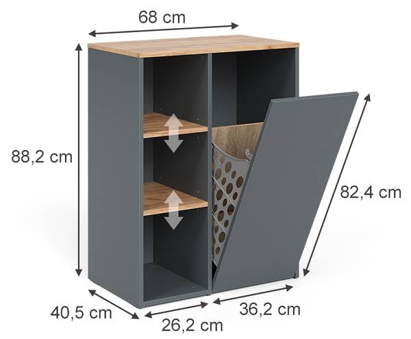 Vous rêvez d'une salle de bain bien organisée et élégante ? L'armoire de salle de bains Viktor est la solution idéale pour vous ! Avec son panier à linge intégré, cette armoire pratique vous permet de garder votre linge sale hors de vue et de maintenir un espace de vie propre et ordonné. Sa hauteur de 68 cm en fait un meuble compact, parfait pour les petites salles de bains. En plus, elle offre suffisamment d'espace pour ranger vos serviettes et vos produits de soins. Ne laissez plus trainer votre linge sale et optez pour l'armoire de salle de bain Viktor dès aujourd'hui !