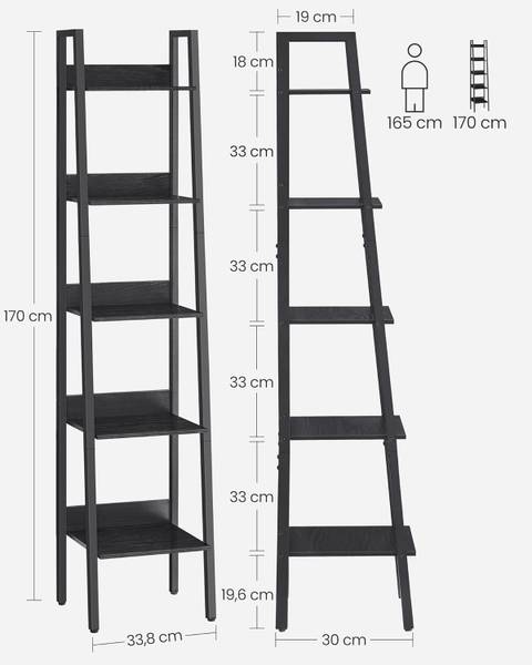 [Forme fine, parfaite pour les espaces restreints] Cette bibliothèque occupe peu de place au sol (seulement 30 x 33,8 cm) et exploite de manière optimale l'espace vertical grâce à la hauteur de 170 cm et aux 5 étagères - cette échelle peu encombrante l'étagère s'adapte bien aux espaces restreints