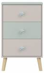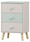 La commode de nuit dispose de trois tiroirs intégrés avec des poignées en forme de cœur qui s'ouvrent sans problème, même pour les enfants. Jouets, livres ou autres petits objets peuvent y être rangés de manière ordonnée.