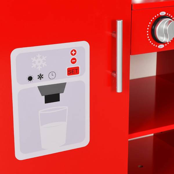 La magnifique cuisine jouet est livrée avec des ustensiles de cuisine et des appareils électroménagers réalistes, tels que cuisinière, évier, micro-ondes, etc. L'évier en plastique est amovible et facile à nettoyer. Le bouton de robinet peut être tourné. Le côté du réfrigérateur a le téléphone sans fil avec le combiné amovible. Il y a le distributeur d'eau et le tableau noir sur la porte du réfrigérateur. Le tableau noir permet à vos enfants d'écrire et de peindre. Sous le tableau noir il y a une plaque pour placer ou ranger les craies ou les stylos. Pendant le jeu, vos enfants doivent faire face à des défis tels que la coordination d'équipe, la communication et la copie avec ordre, etc. Fabriqué en MDF, l'ensemble de jeu de cuisine est très robuste et stable.