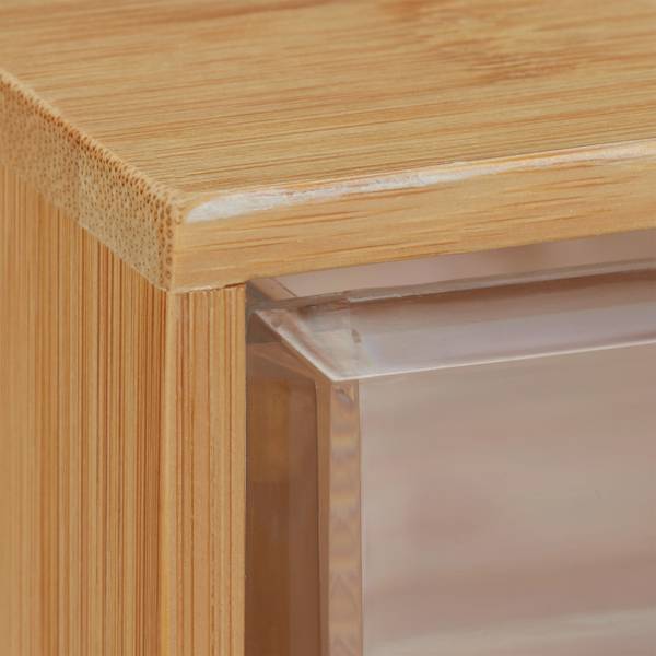 La boîte à tiroirs vous aide à stocker proprement et visiblement les petits objets de toutes sortes. L’organiseur de table offre de la place avec ses 3 tiroirs pour le fard à paupières, le rouge à lèvres ou cosmétiques, mais aussi les bijoux peuvent être trier dans la boîte de rangement. L’organiseur de table séduit aussi sur le bureau, si vous voulez toujours avoir vos ustensiles de bureau à portée de main. Le bambou naturel de la boîte offre un contraste agréable aux tiroirs transparents en plastique.