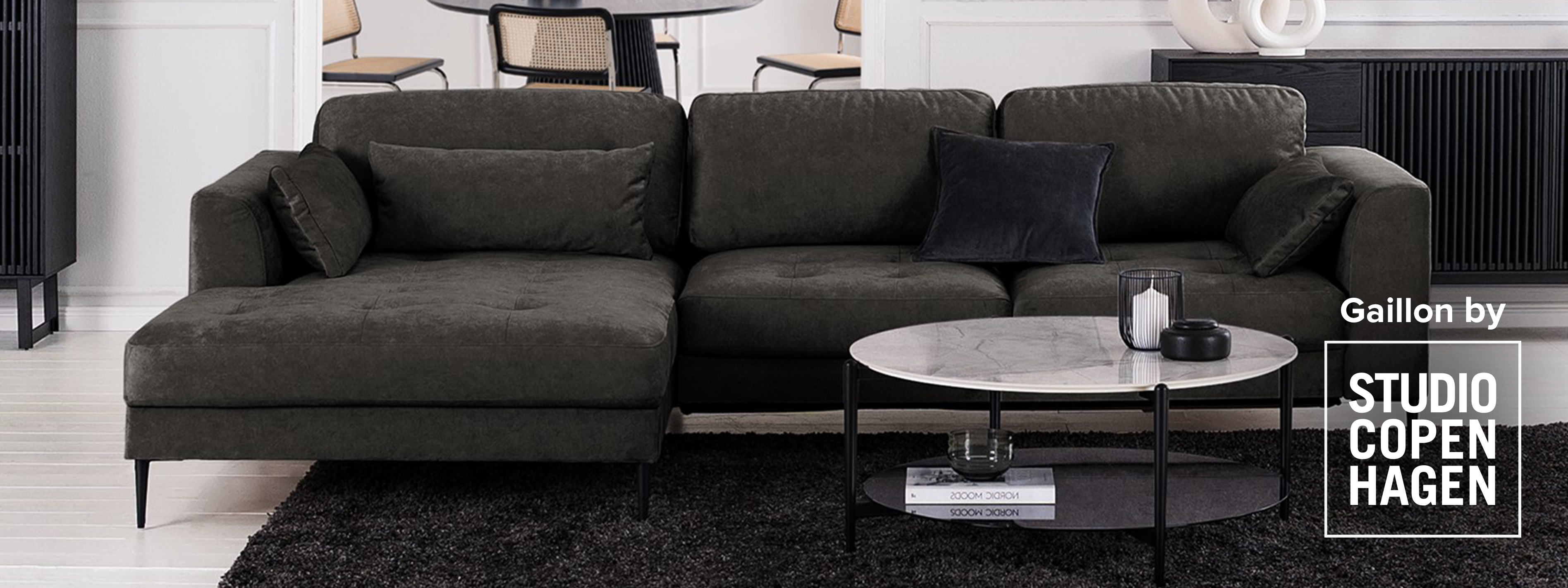 Généreuse, confortable et intemporelle : comme toutes les assises de notre marque exclusive Studio Copenhagen, la série Gaillon prouve qu'il est possible d'allier harmonieusement design et plaisir d'utilisation au quotidien. Grâce à la combinaison d'un rembourrage en mousse de haute qualité, de coussins mœlleux et de ressorts ondulés, Gaillon est incroyablement accueillant, tout en cultivant un look aérien grâce à ses pieds métalliques élancés. La fonction lit d'appoint et l'espace de rangement intégré dans la méridienne font par ailleurs de la version canapé d'angle le meuble polyvalent idéal pour chaque salon.